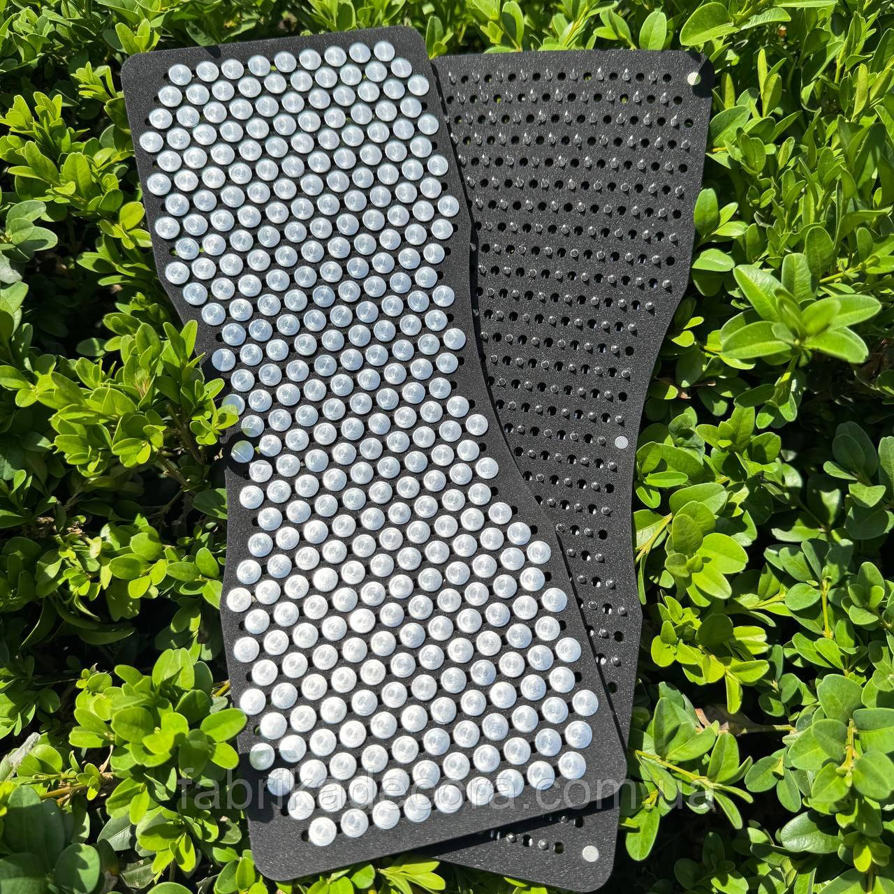 Цвяхи алюмінієві, дуже практичні і довговічні, рівні, однакової висоти. Отвори в основах трохи вужчі, ніж діаметр цвяха, щоб цвях тримався рівно і не випадав. На дошці можна сидіти і вставати руками. Стояння на такій дошці стане комфортним для новачків, через маленький крок цвяхів - 10 мм. Розмітка дошки — гексагон. Кількість цвяхів - 688 штук.
